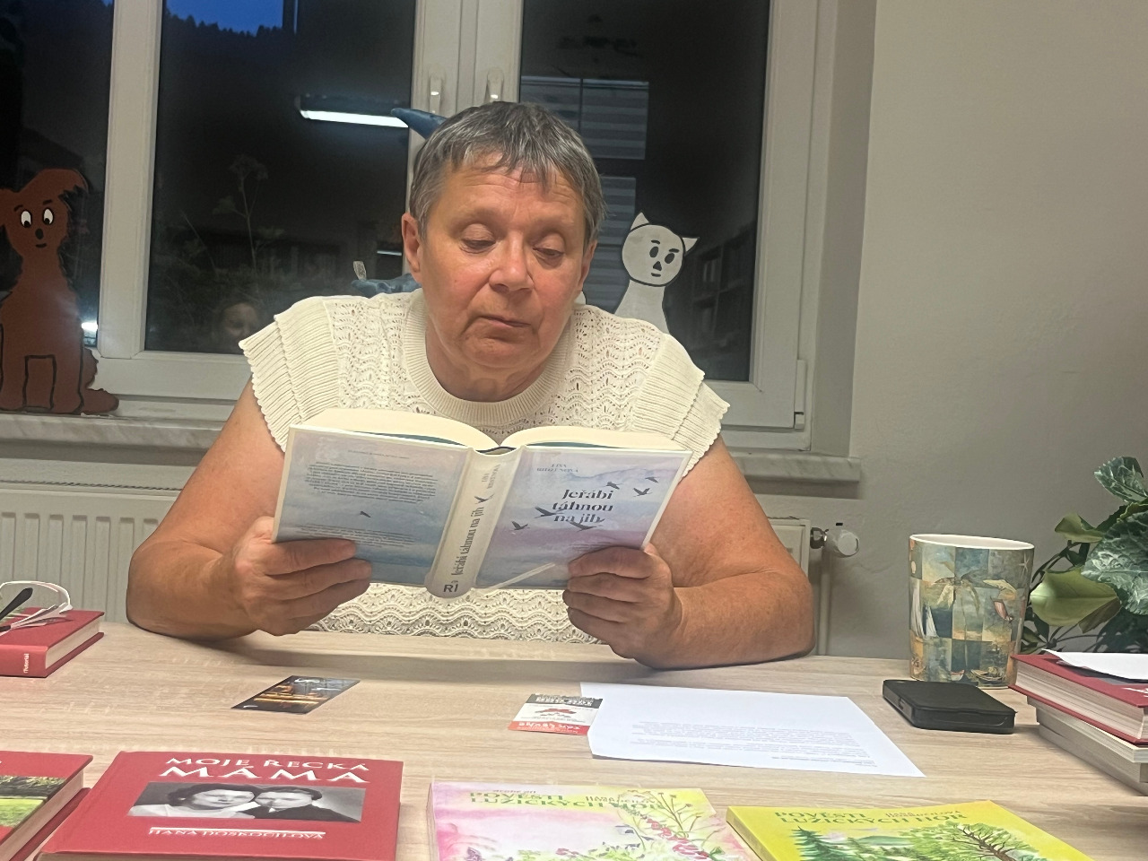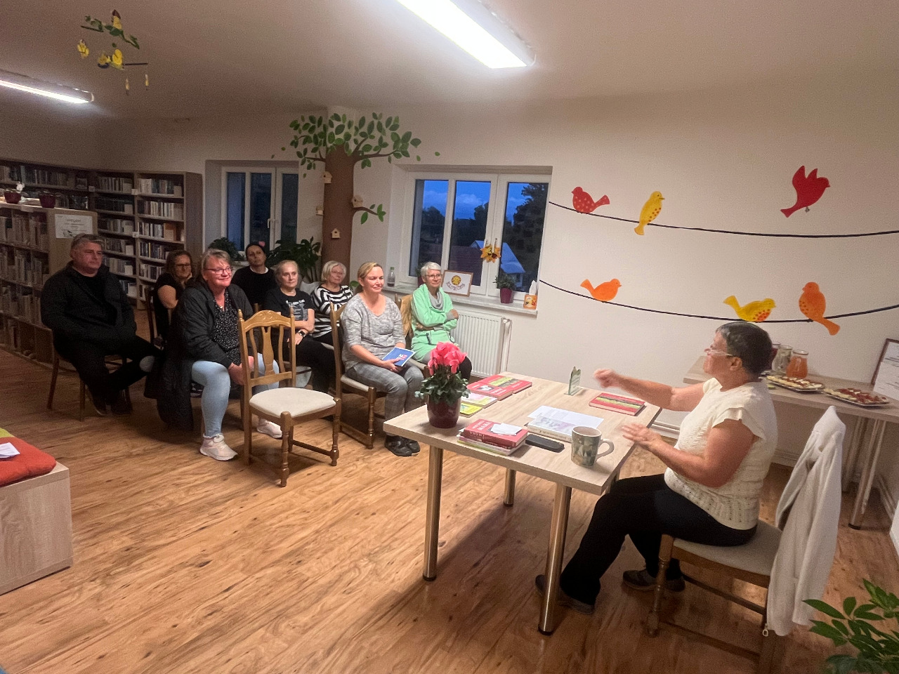 Program dále obohatilo autorské čtení spisovatelky Hany Horák Doskočilové, které bylo doplněno o besedu s paní spisovatelkou. Návštěvníci měli jedinečnou příležitost nahlédnout do světa literatury nejen skrze slova, ale i osobní setkání s autorkou. Večerní atmosféra, literární zážitky a přátelská setkání potvrdily, že čtení spojuje i v malé obci, jako jsou Jeřmanice. Akce byla příjemná, čtení bylo opravu poutavé a rádi ji zopakujeme v příštím roce.